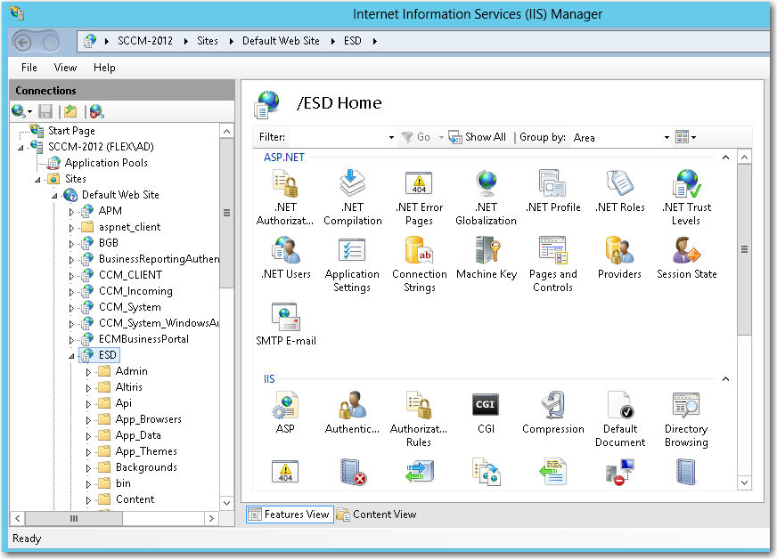 1. Open IIS Manager and select the ESD virtual directory under Sites in the tree.