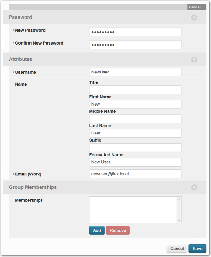 2. Click on Add Users and select Create New User. The Create New User dialog box opens.