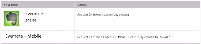 If the user selects to also request the mobile application, both catalog items will be included on the same request, but two different request IDs will be create